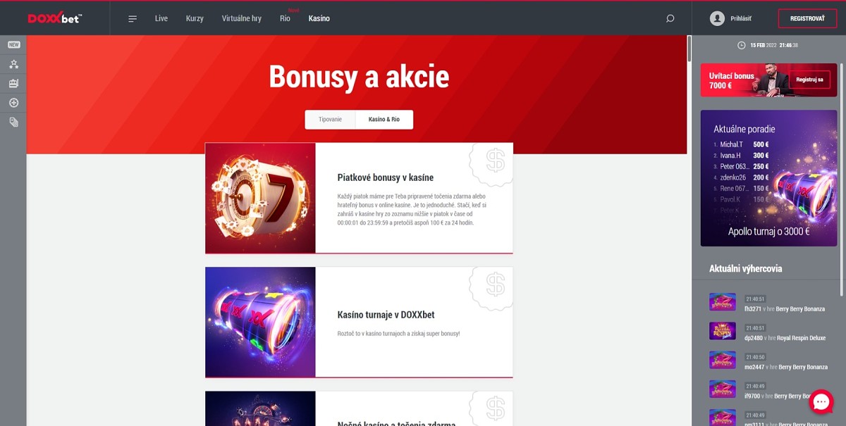 Výber bonusov v DOXXbet kasíne je naozaj pestrý. Kasíno neustále pridáva nové akcie, takže sa ich ponuku určite oplatí pravidelne sledovať.