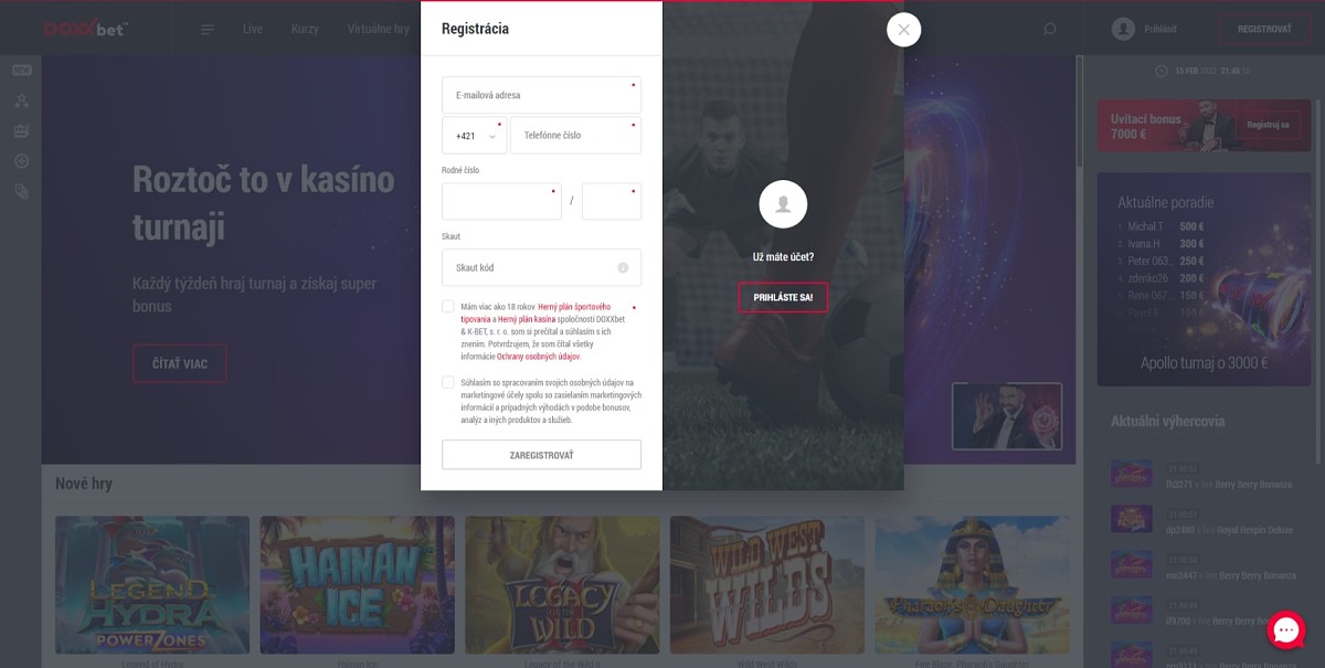 Pre prístup k športovým stávkam aj online kasínu vám stačí jeden účet, ktorý si môžete zaregistrovať na hlavnej stránke DOXXbet.