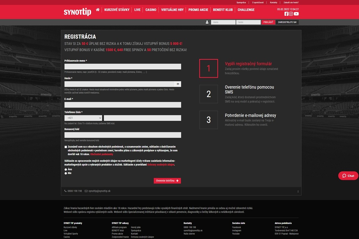 Hlavní stránka: www.synottip.sk Stránka registrace: https://moj.synottip.sk/registracia |