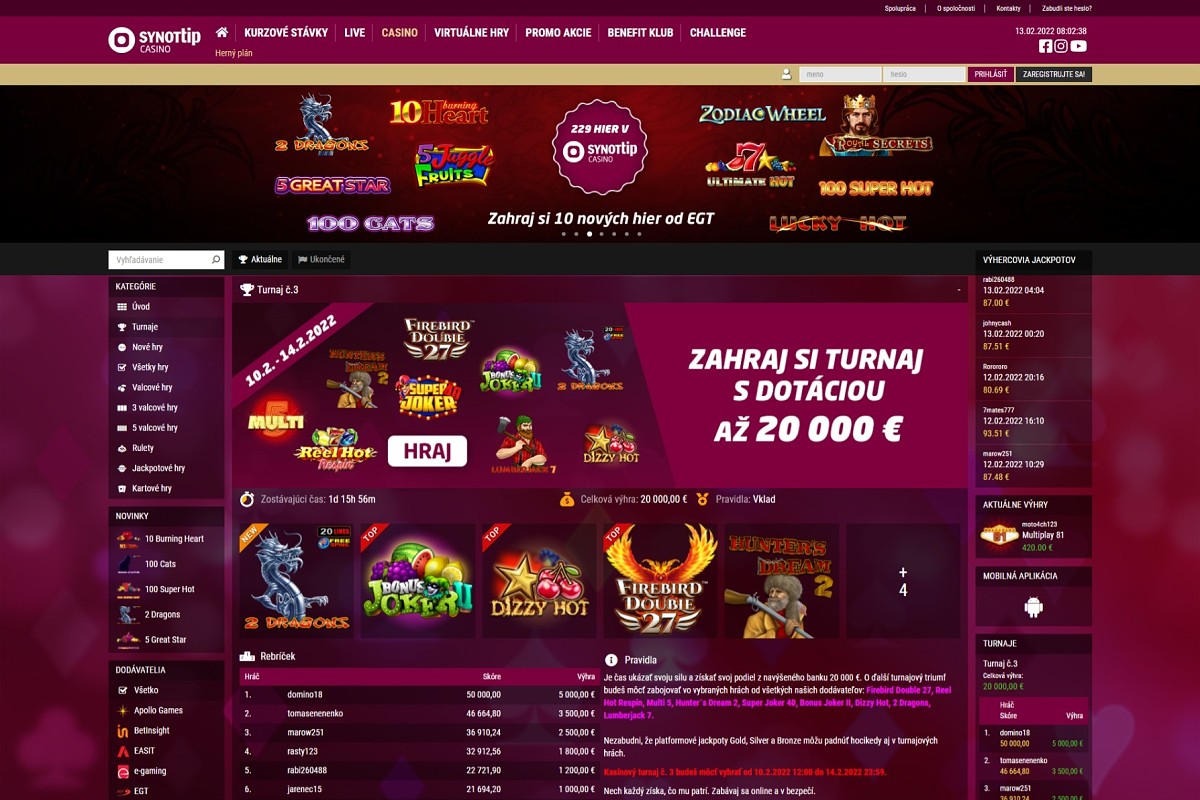 Kasíno Synot tip v nás zanechalo veľmi pozitívny dojem. Na prvý pohľad ide o serióznu stávkovú spoločnosť s dlhoročnou históriou a platnou licenciou podľa zákonov SR.
